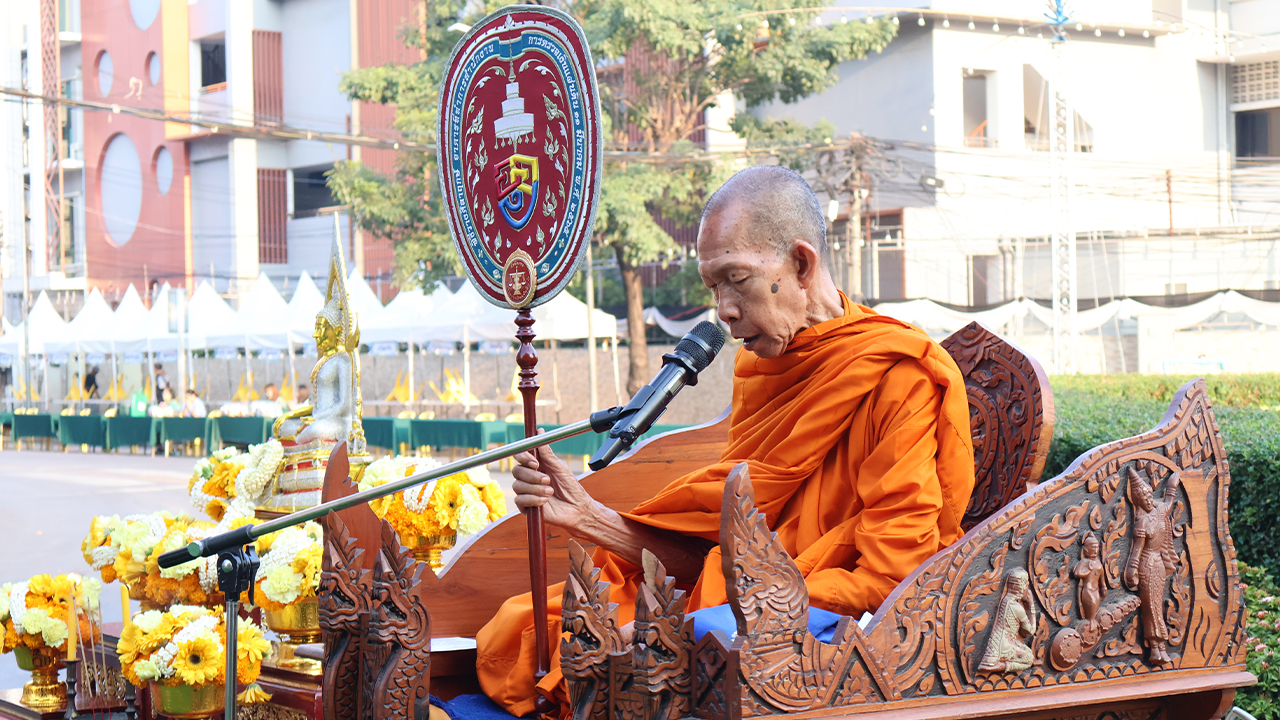 ในการนี้ พระเทพสาครมุนี ที่ปรึกษาเจ้าคณะภาค 14 เจ้าอาวาสวัดเจษฎาราม พระอารามหลวง ประธานฝ่ายสงฆ์ ได้กล่าวสัมโมทนียกถาแก่พุทธศาสนิกชน โดยเน้นย้ำให้ประชาชนใช้สติและปัญญาเป็นแนวทางในการดำเนินชีวิต มากกว่าการยึดติดกับโชคชะตา พร้อมทั้งส่งเสริมให้ยึดมั่นในหลักธรรม เพื่อสร้างความเข้มแข็งให้กับตนเอง ครอบครัว และสังคม