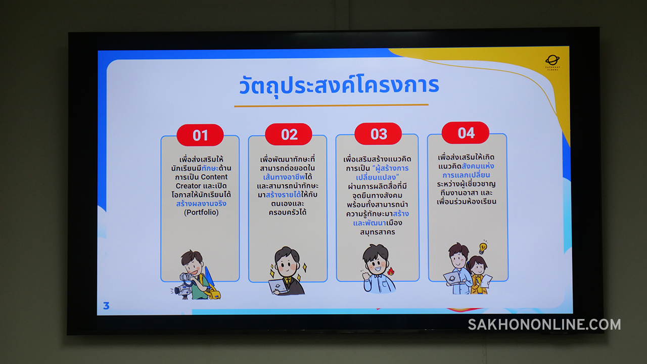 สำหรับโครงการโรงเรียนวันเสาร์สมุทรสาคร ซีซั่น 3 ซึ่งเป็นการศึกษานอกห้องเรียน จะจัดการเรียนการสอนหลักสูตร Content Creator มุ่งเน้นการเสริมทักษะการสร้างสรรค์คอนเทนต์ให้แก่นักเรียนระดับมัธยมศึกษาตอนปลาย จากโรงเรียนในสังกัดสำนักงานเขตพื้นที่การศึกษามัธยมศึกษาสมุทรสาคร สมุทรสงคราม (สพม.สคสส) และองค์การบริหารส่วนจังหวัดสมุทรสาคร โดยมีเป้าหมายสร้าง “ห้องเรียนต้นแบบ” ร่วมกัน กำหนดจัดการเรียนการสอนทุกวันเสาร์ ประมาณ 8 สัปดาห์ ระหว่างเดือน ธ.ค. 2568 ถึง ก.พ. 2569 ณ อุทยานการเรียนรู้สมุทรสาคร (SK Park) และพื้นที่ข้างเคียง ทั้งนี้ ทางโครงการโรงเรียนวันเสาร์สมุทรสาคร ซีซั่น 3 จะได้เปิดรับสมัครทีมงานอาสา เพื่อมาร่วมสร้างห้องเรียนวันเสาร์สมุทรสาคร ในลำดับต่อไป