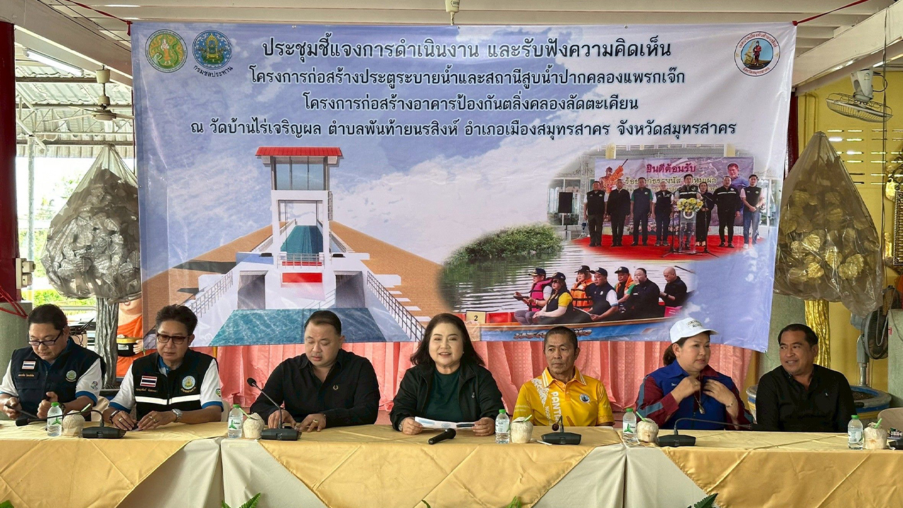 “ณมาณิตา กลับบ้านเกาะ” อดีต ผช.รมว.เกษตรฯ เปิดประชุมชี้แจงโครงการก่อสร้างเขื่อนป้องกันน้ำท่วม – ประตูระบายน้ำ ของโครงการชลประทานสมุทรสาคร วงเงินรวม 660 ล้านบาท แก้น้ำท่วมพื้นที่ ต.พันท้ายนรสิงห์ จ.สมุทรสาคร
