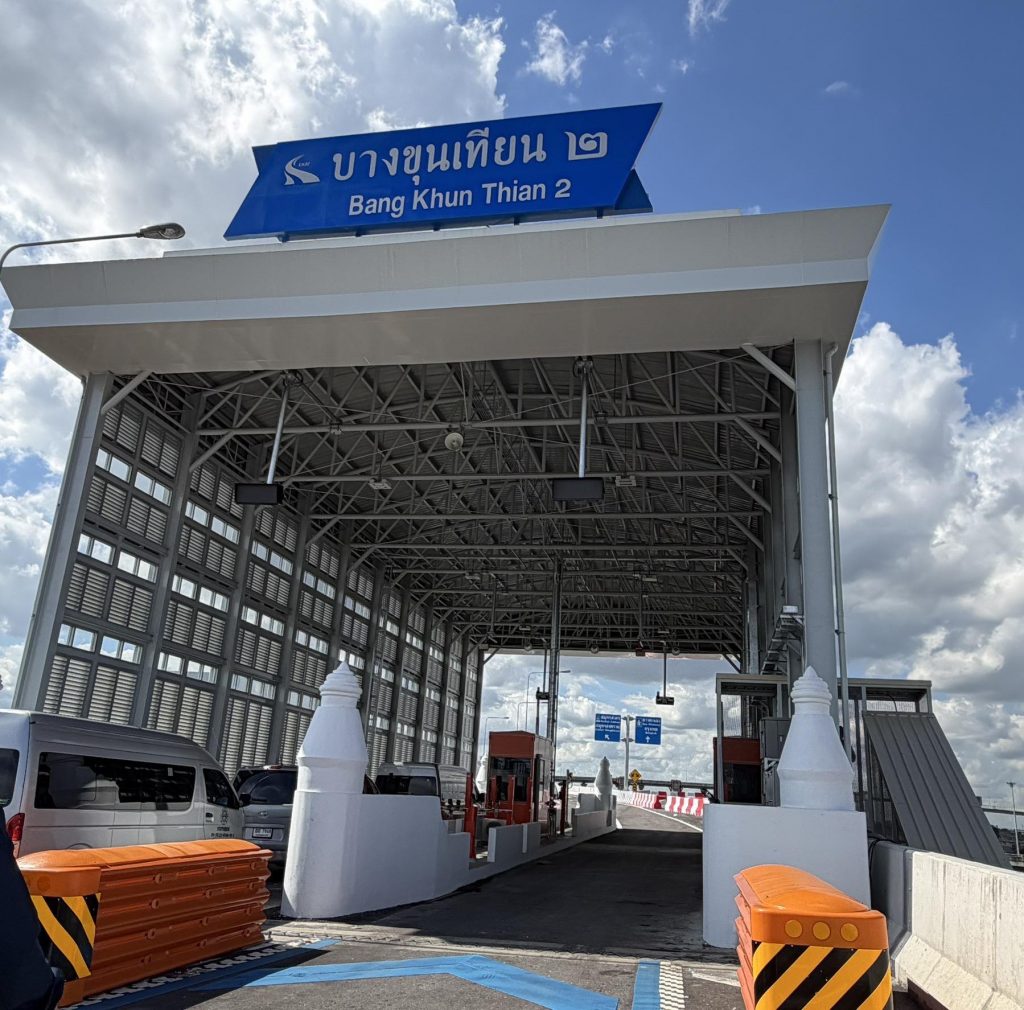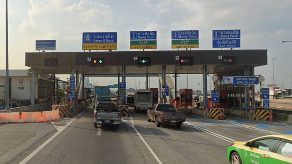 ลงที่ด่านบางเสาธง ค่าผ่านทาง 20 บาท จ่ายรวมกัน 75 บาท