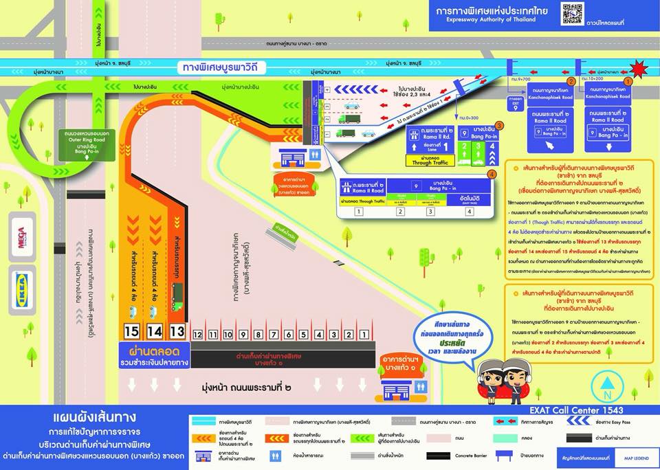 หมายเหตุ : ถ้าจะไปทางพิเศษเฉลิมมหานคร (ไปดาวคะนอง ดินแดง) ต้องจ่ายเงินเพิ่มอีก 5 บาท ที่ด่านบางจาก